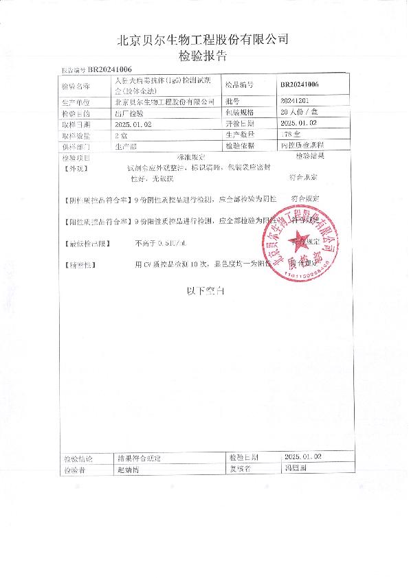 人狂犬病毒抗体(IgG)检测试剂盒(胶体金法)