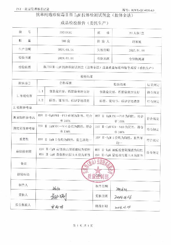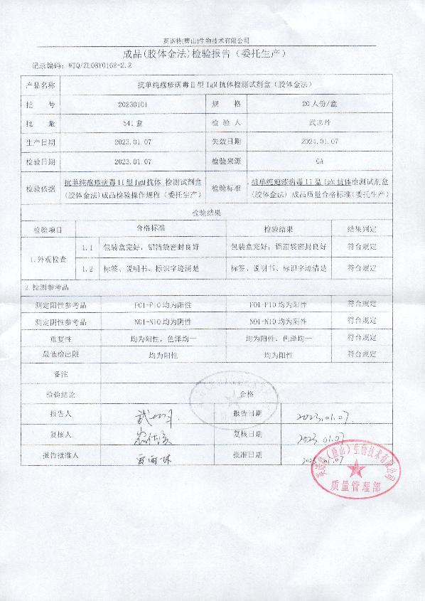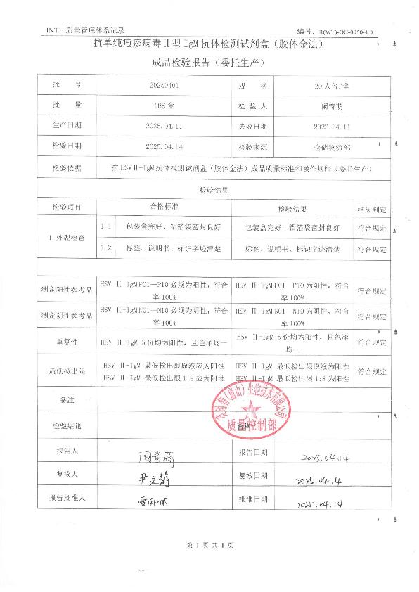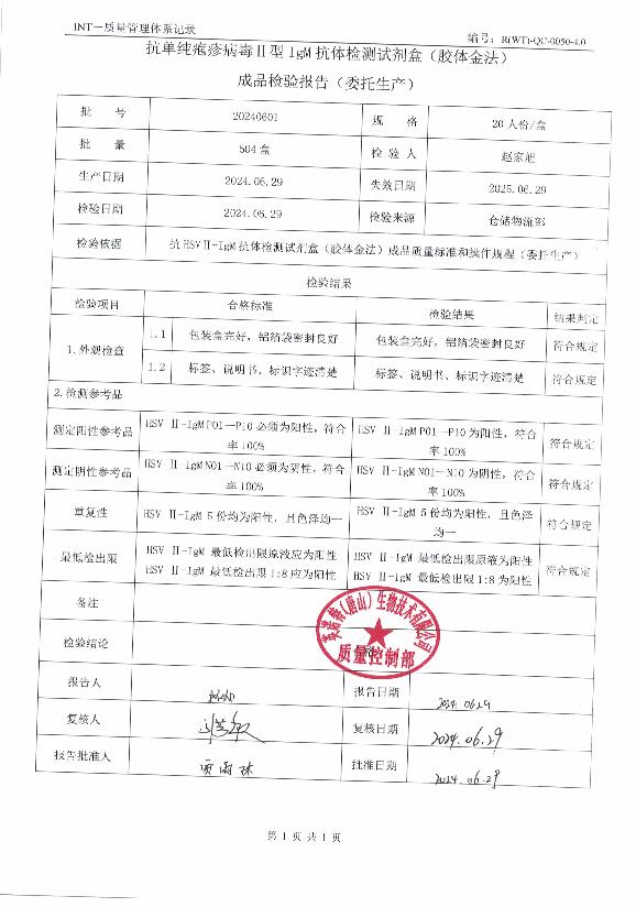 英诺特抗单纯疱疹病毒II型IgM抗体检测试剂盒(胶体金法)
