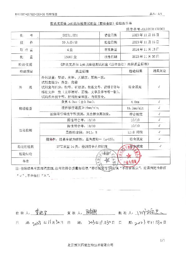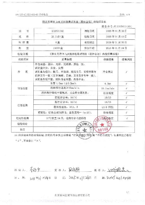 肺炎支原体IgM抗体检测试剂盒(胶体金法)