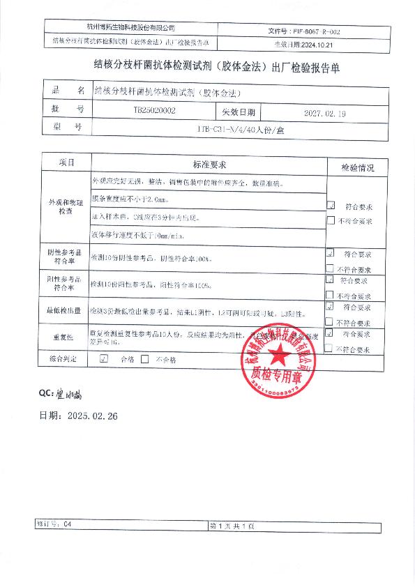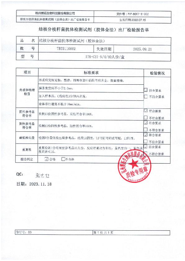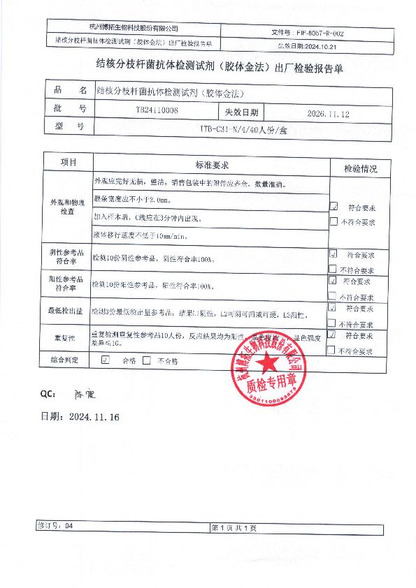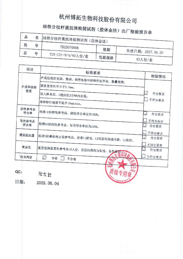 博拓 结核分枝杆菌抗体检测试剂(胶体金法)