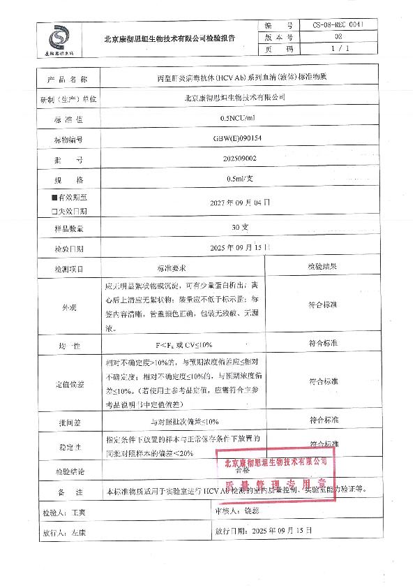 丙型肝炎病毒抗体血清(液体)标准物质
