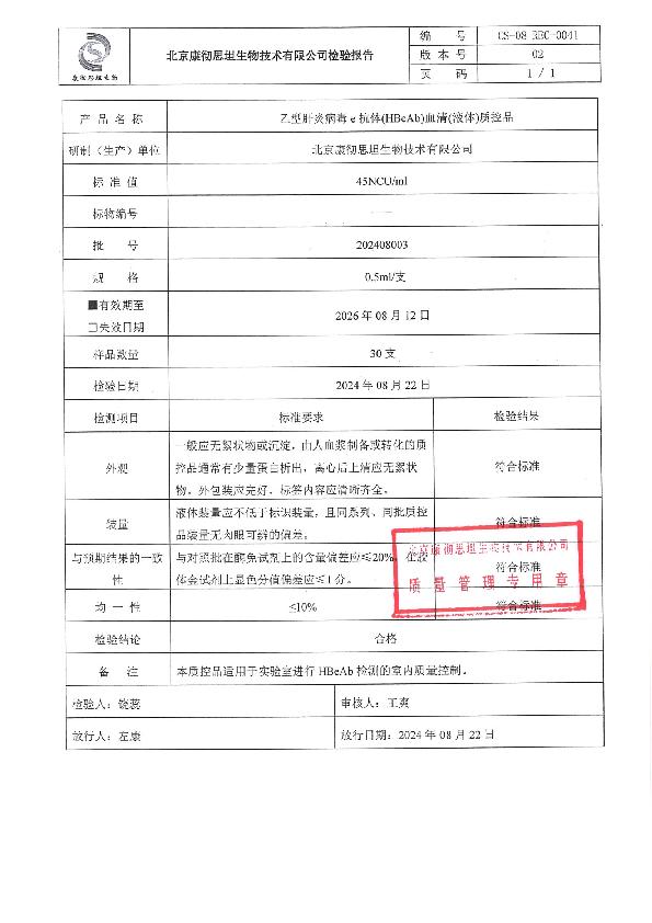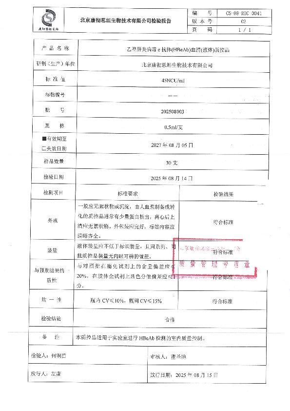 乙型肝炎病毒e抗体(HBeAb)血清(液体)质控品(非定值)