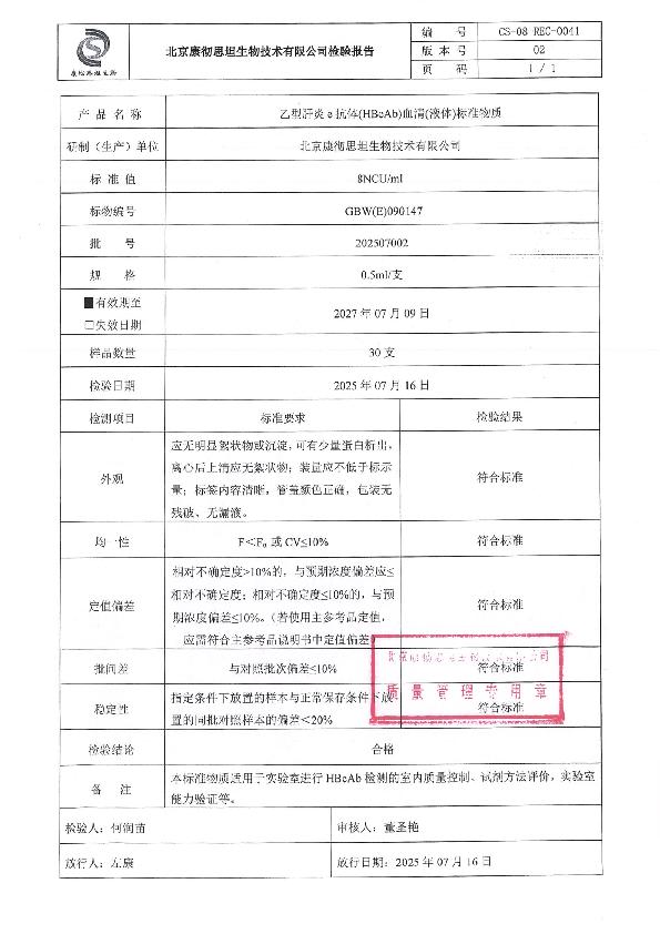 康彻思坦乙型肝炎病毒e抗体(HBeAb)血清(液体)质控品说明书