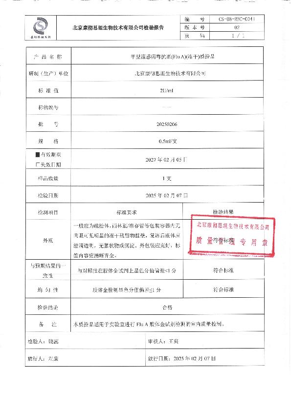 甲型流感病毒抗原(FluA)(冻干)质控品