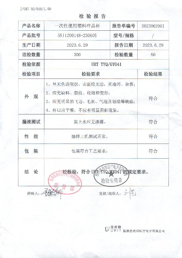 一次性使用塑料样品杯
