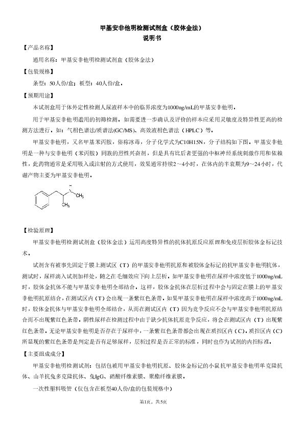 艾博甲基安非他明检测试剂盒(胶体金法)