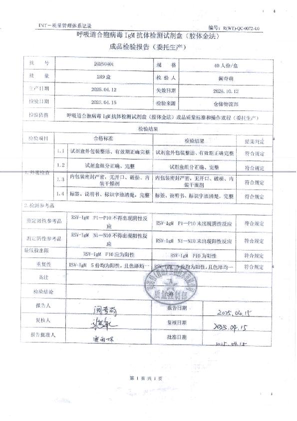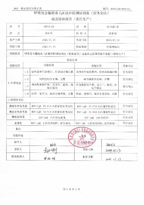 英诺特呼吸道合胞病毒IgM抗体检测试剂盒(胶体金法)