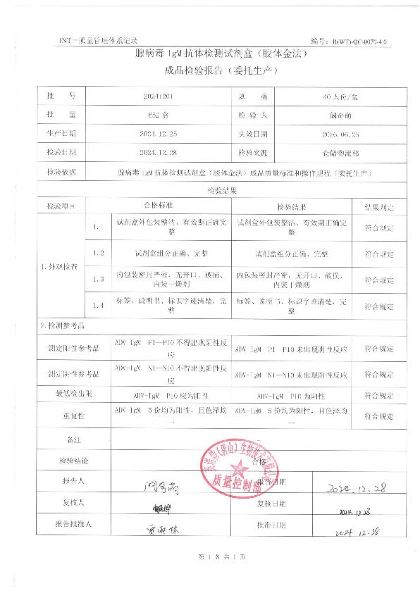 腺病毒IgM抗体检测试剂盒(胶体金法)