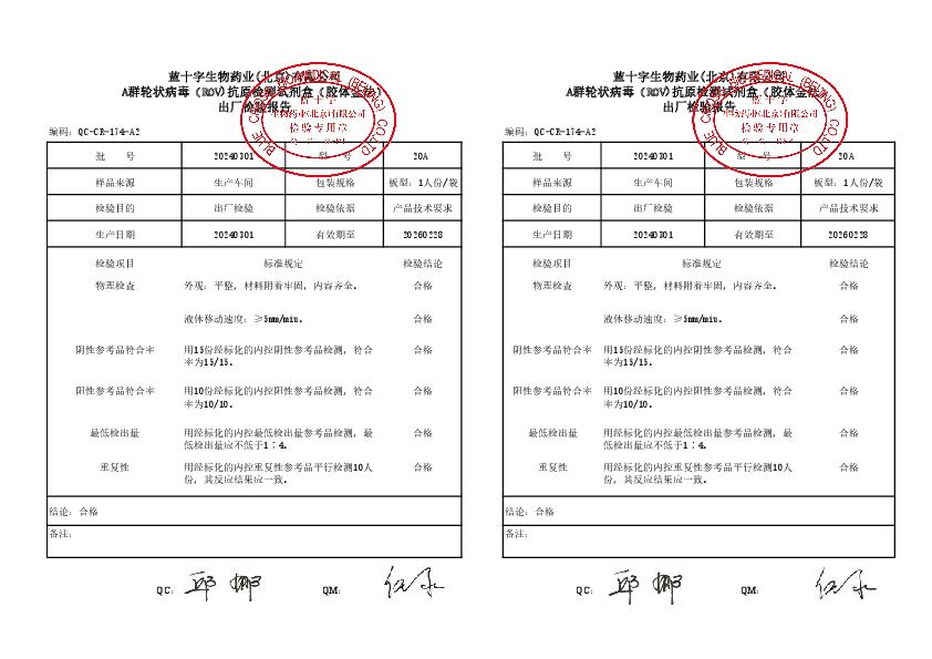 蓝十字A群轮状病毒(ROV)抗原检测试剂盒(胶体金法)