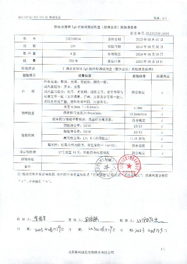 四寰肺炎衣原体IgG抗体检测试剂盒(胶体金法)