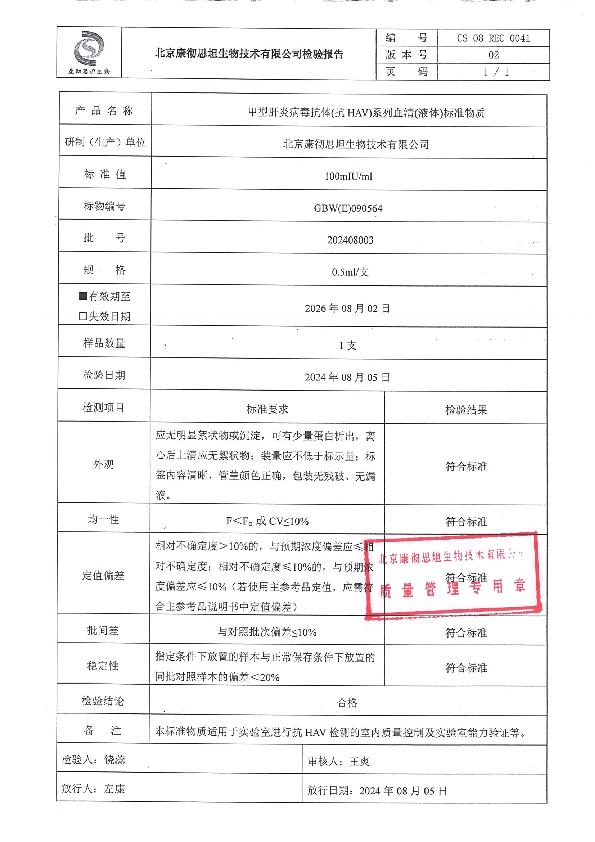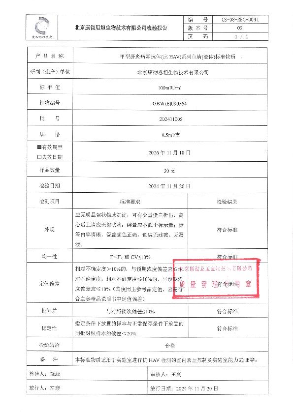 甲型肝炎病毒抗体(抗HAV)系列血清(液体)标准物质
