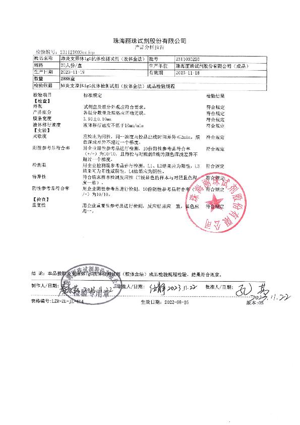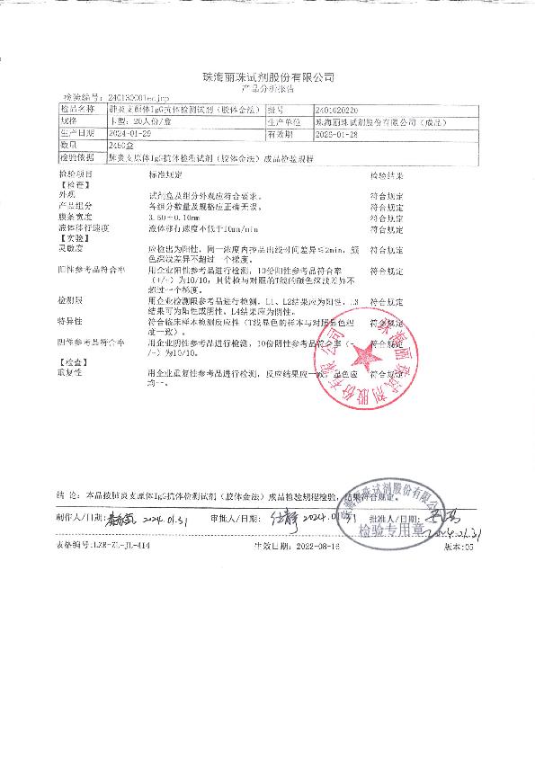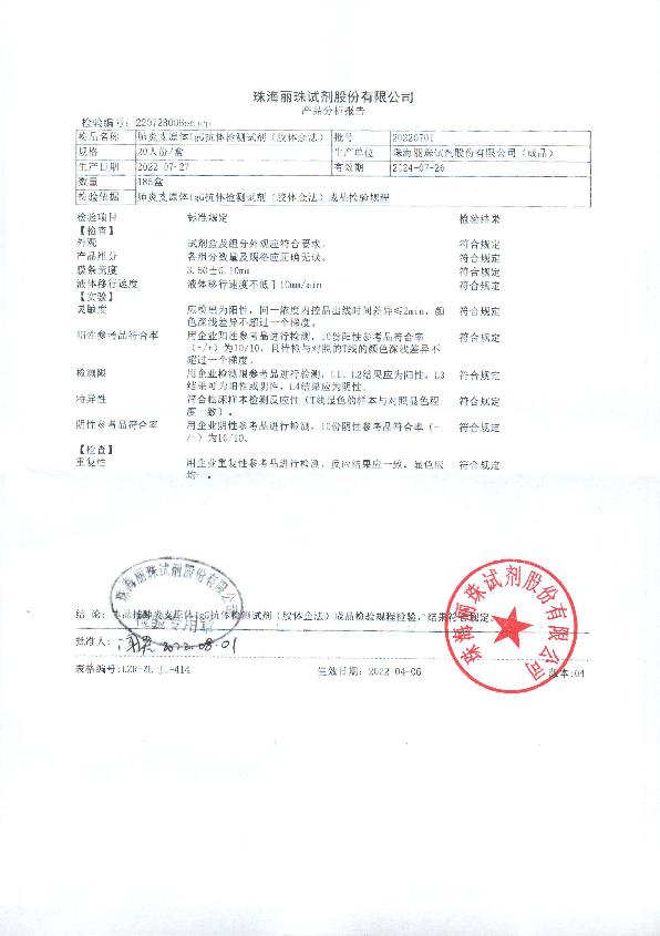丽珠 肺炎支原体IgG抗体检测试剂(胶体金法)