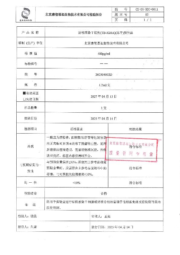 结核感染T细胞(TB-IGRA)(冻干)质控品