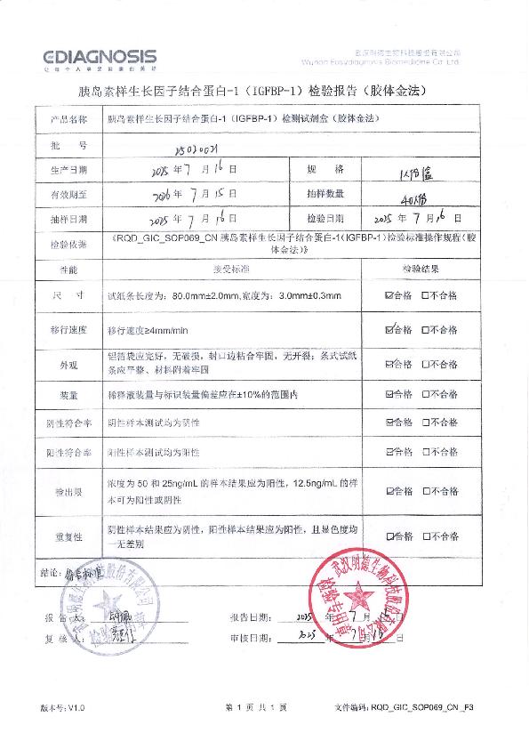 胰岛素样生长因子结合蛋白-1(IGFBP-1) 检测试剂盒(胶体金法)