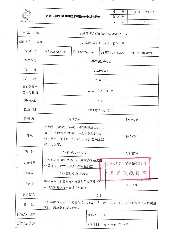 乙型肝炎表面抗原(HBsAg)(液体)质控品2023年新版本