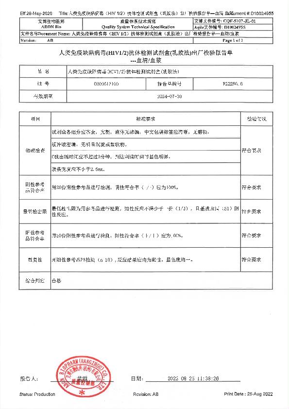 艾博人类免疫缺陷病毒(HIV1.2)抗体检测试剂盒(乳胶法)说明书