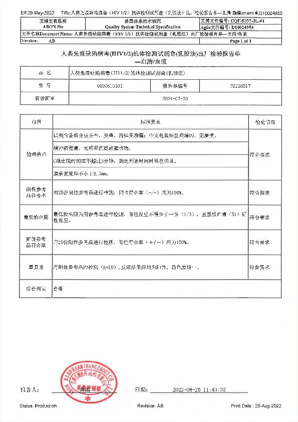 艾博 人类免疫缺陷病毒(HIV1.2)抗体检测试剂盒(乳胶法)