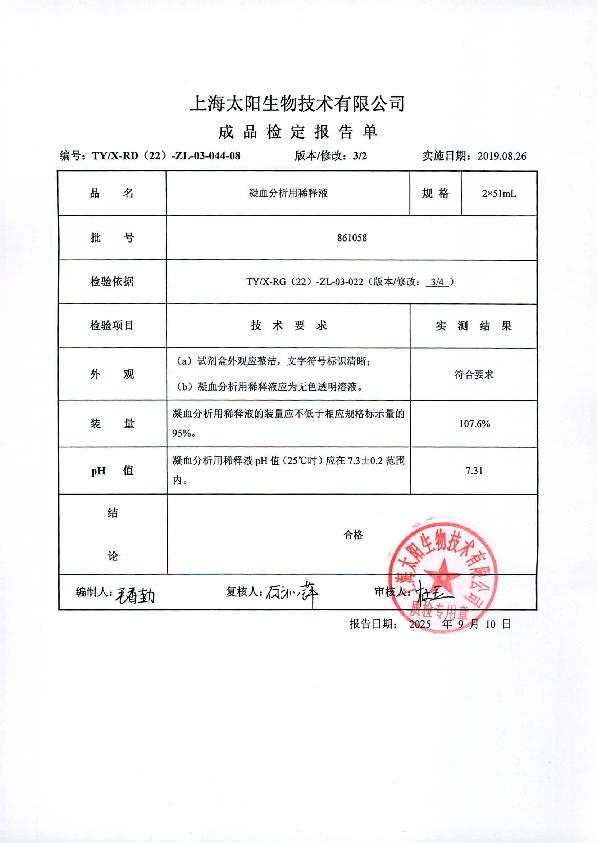 太阳 凝血分析用稀释液