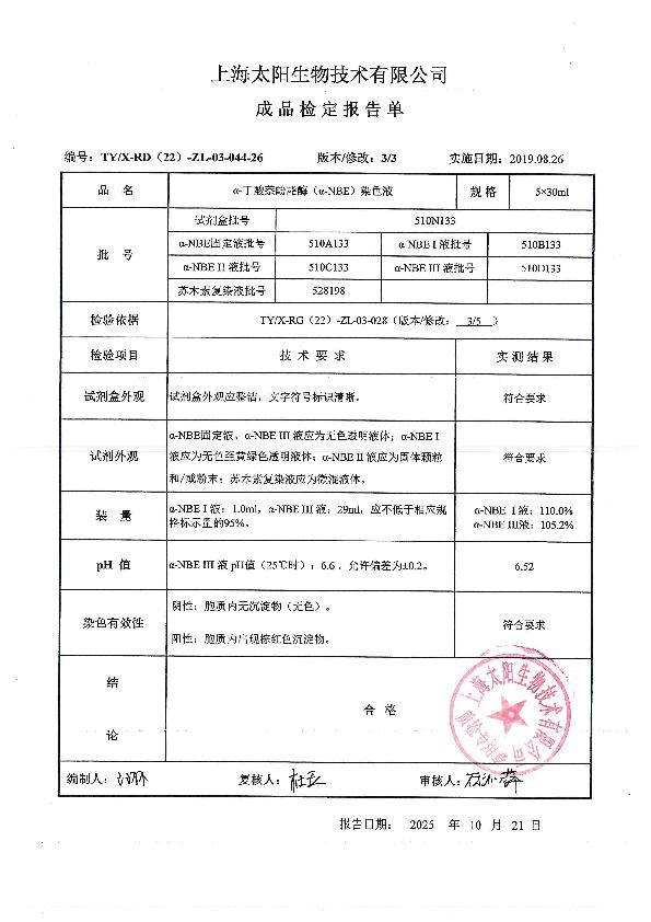 太阳 α-丁酸萘酚酯酶(α-NBE)染色液