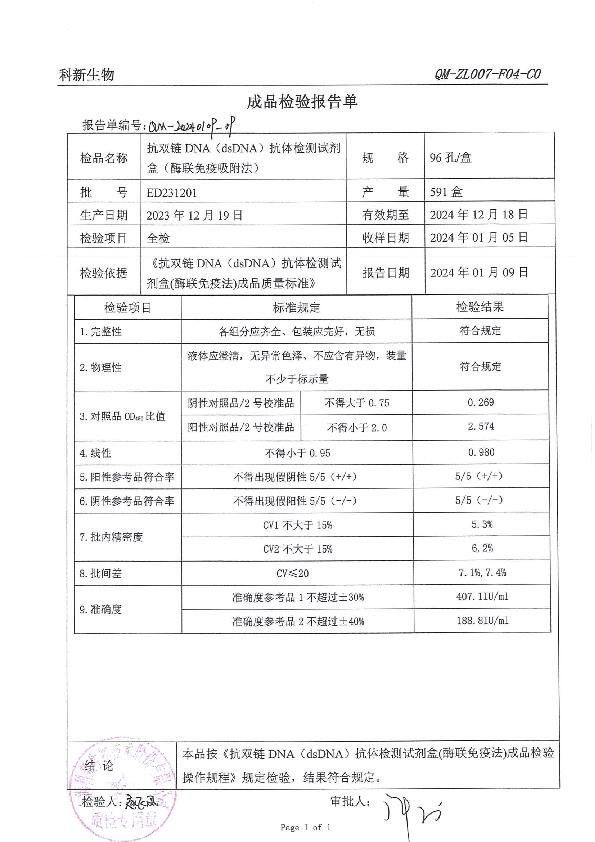 抗双链DNA(dsDNA)抗体检测试剂盒(酶联免疫吸附法)