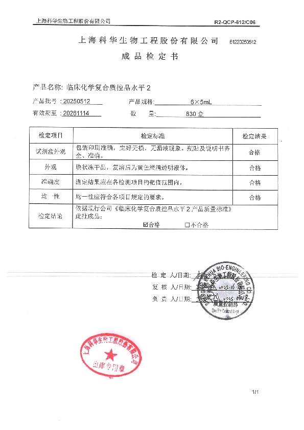 临床化学复合质控品水平2