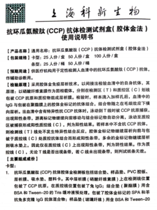 科新生物 抗环瓜氨酸肽(CCP)抗体检测试剂盒(胶体金法)