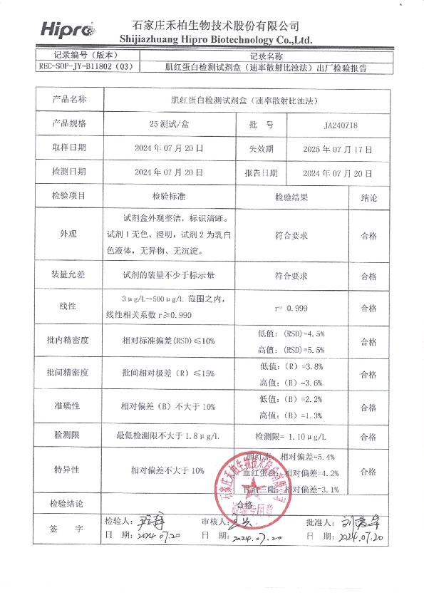 禾柏肌红蛋白检测试剂盒(速率散射比浊法)