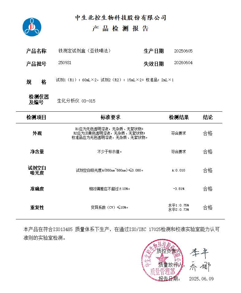 中生北控 中生铁测定试剂盒(亚铁嗪法)