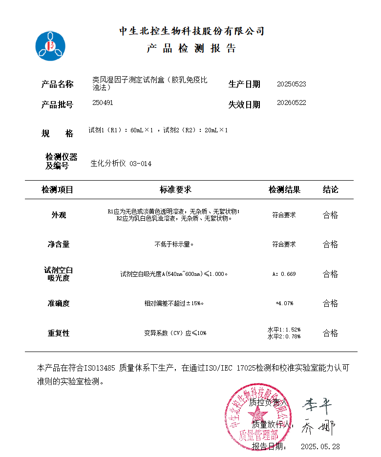 中生类风湿因子测定试剂盒(胶乳免疫比浊法)