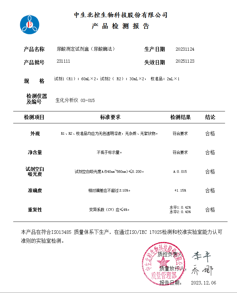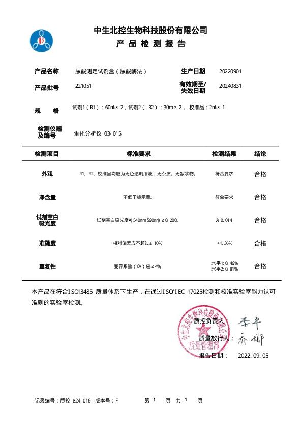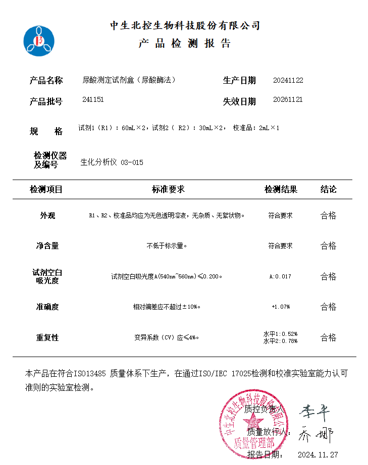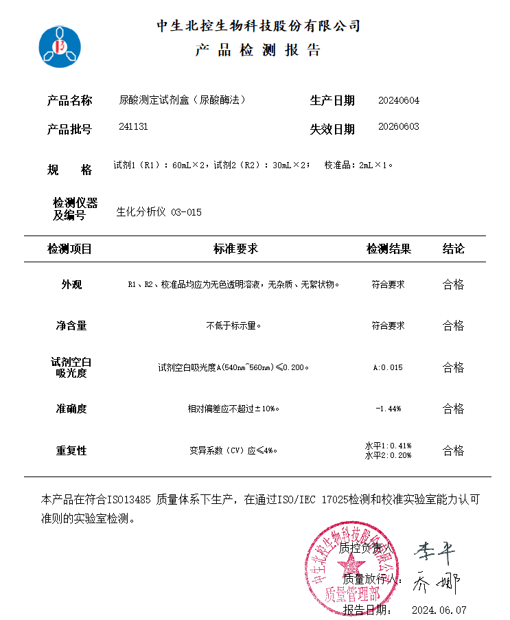 中生尿酸测定试剂盒(尿酸酶法)