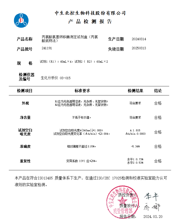 中生丙氨酸氨基转移酶测定试剂盒(丙氨酸底物法)