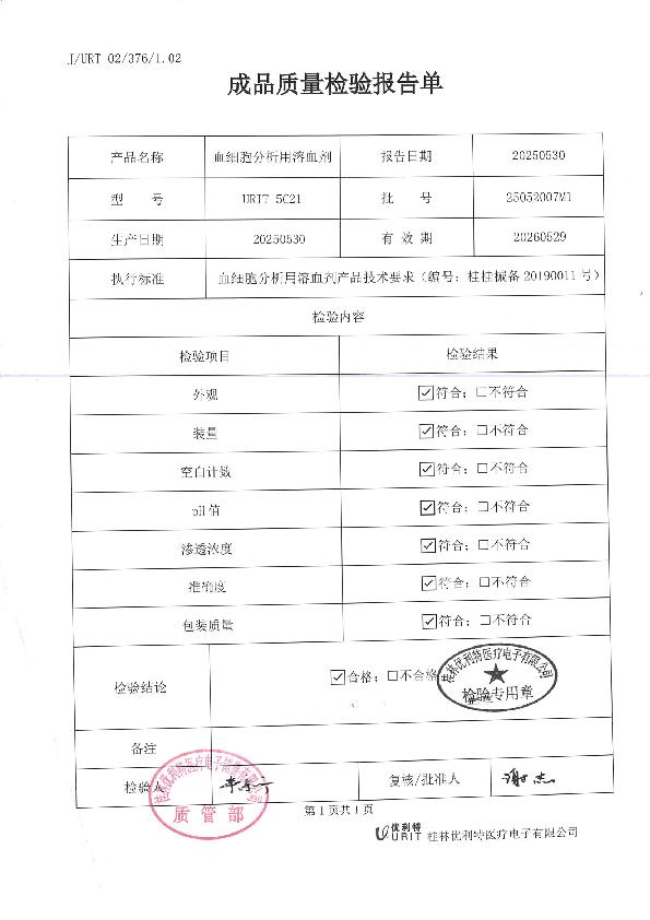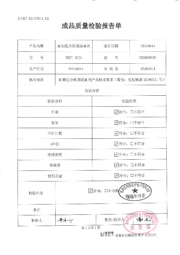 优利特 生产产品登记表