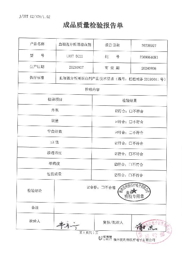 优利特 一类备案凭证