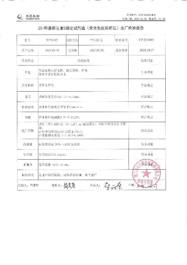 25-羟基维生素D测定试剂盒(荧光免疫层析法)