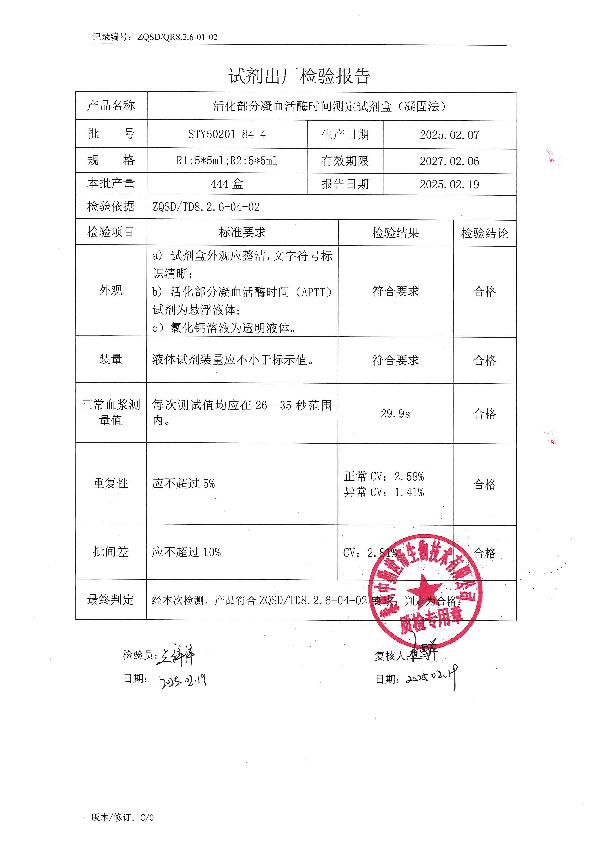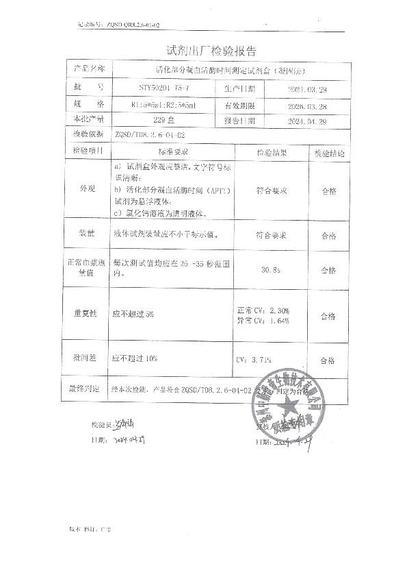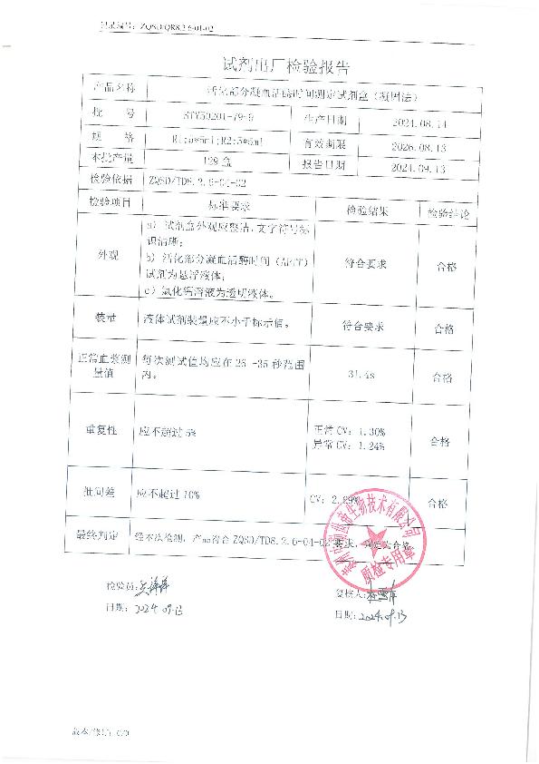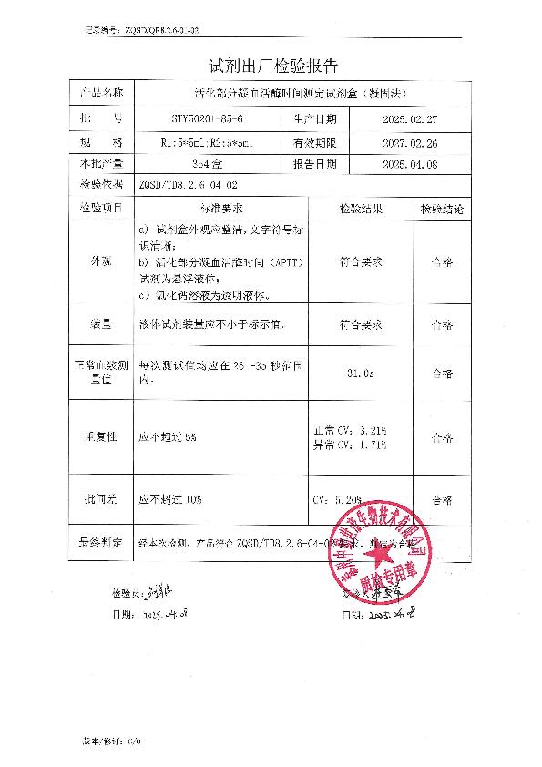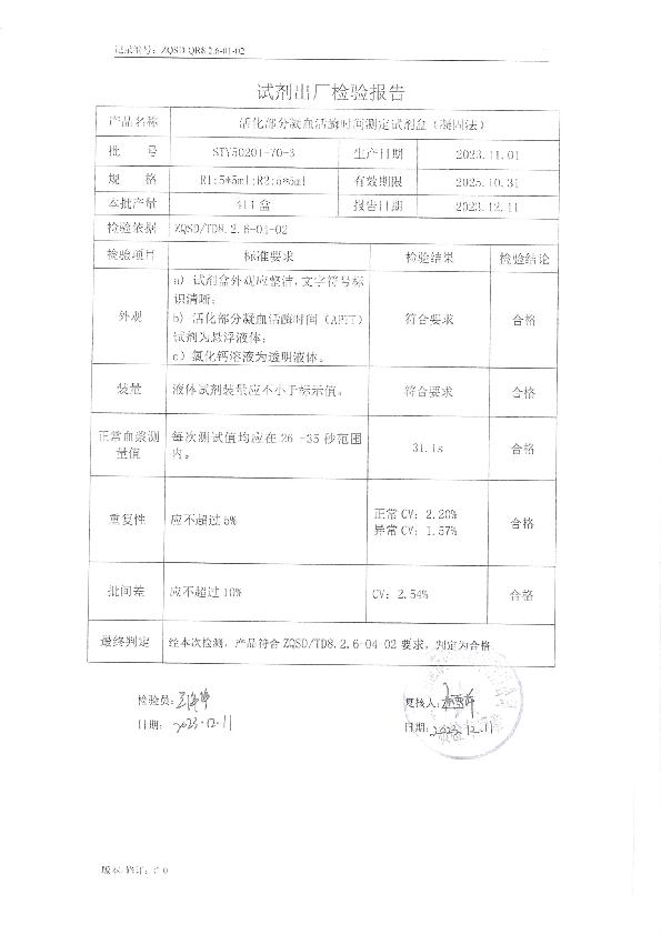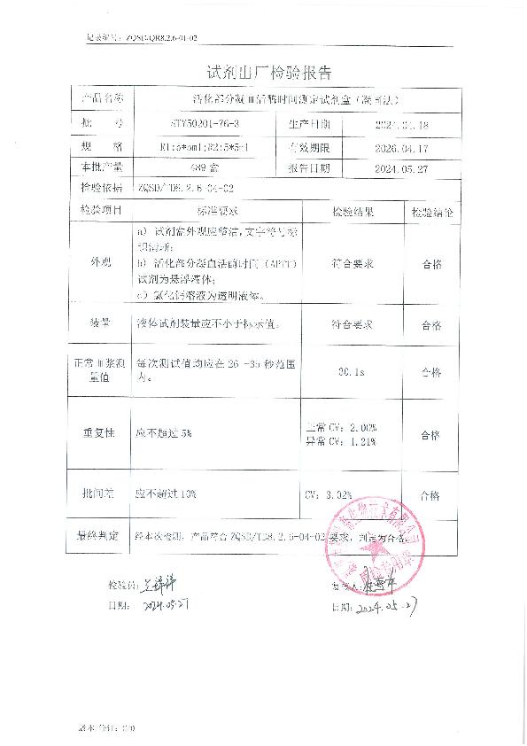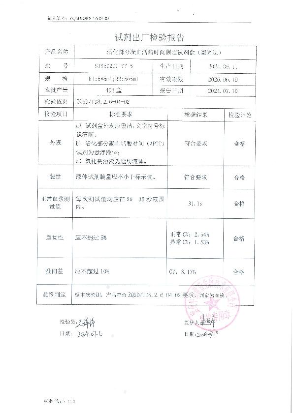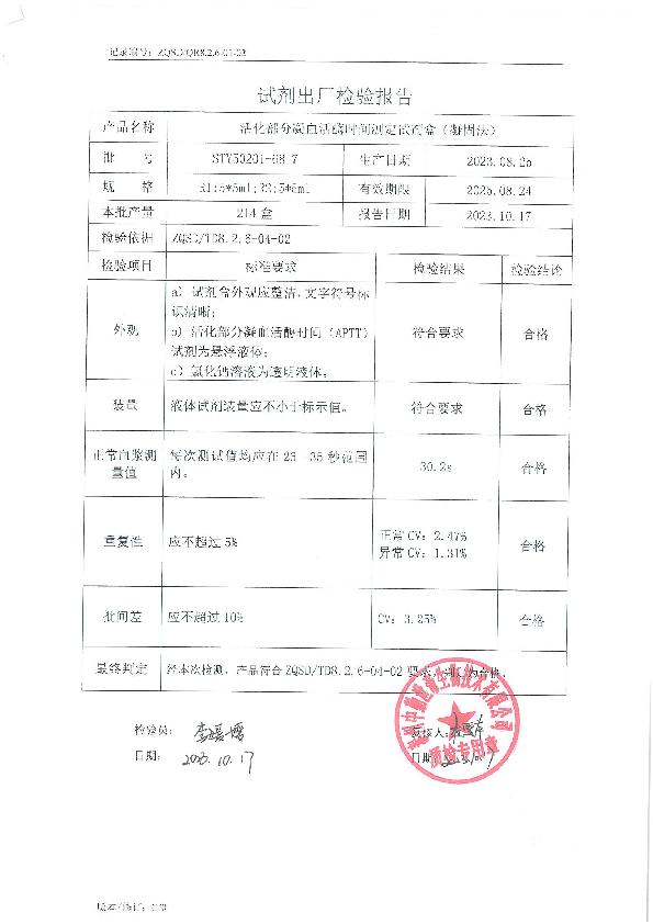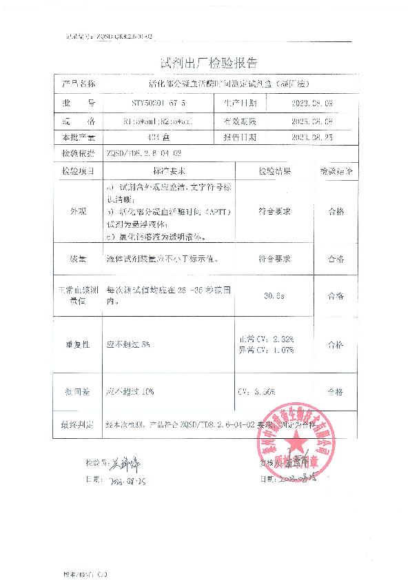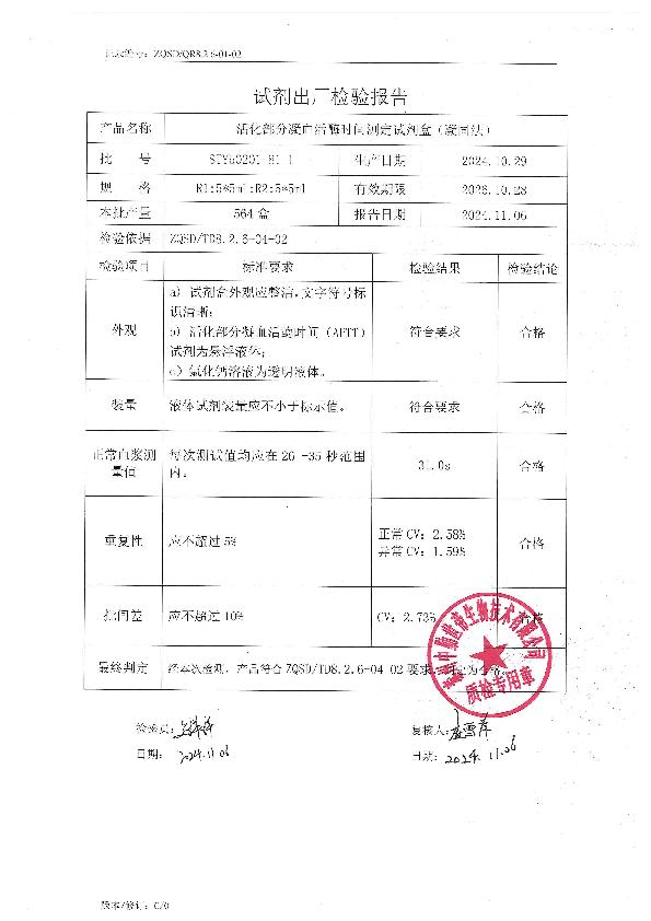 中勤活化部分凝血活酶时间测定试剂盒(凝固法)