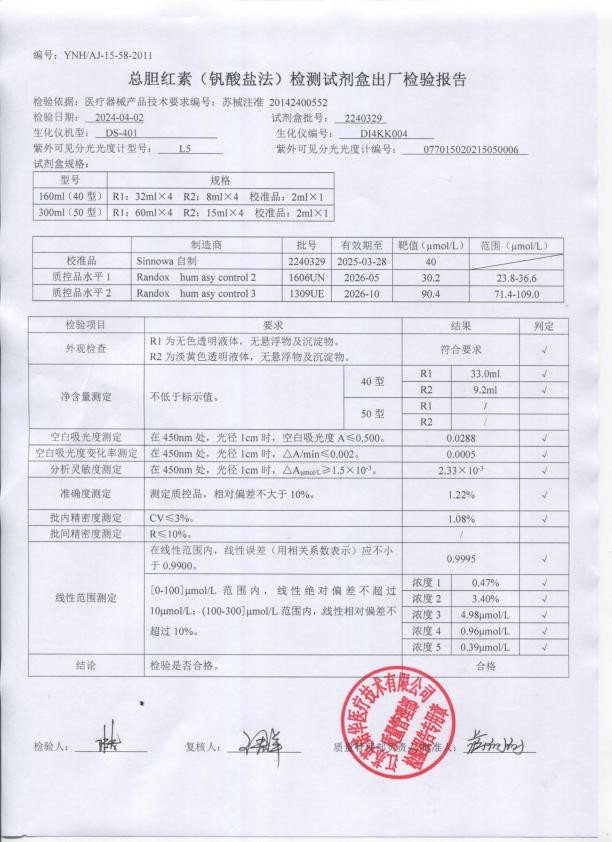 英诺华总胆红素检测试剂盒(钒酸盐法)