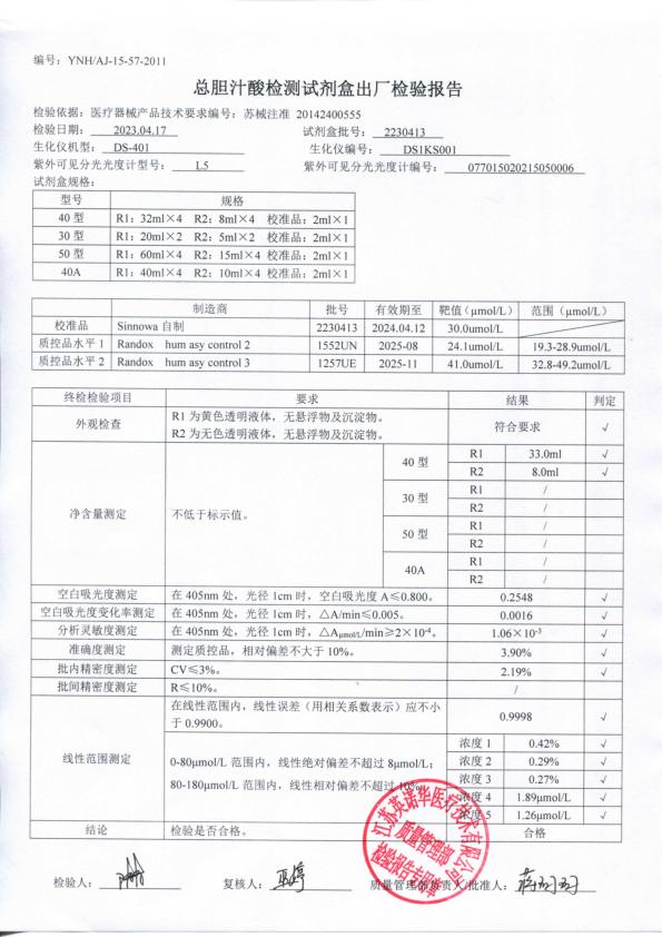 英诺华总胆汁酸(TBA)定量测定试剂盒(酶循环法)