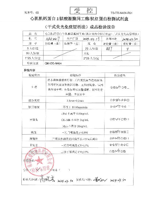 岚煜心肌肌钙蛋白I/肌酸激酶同工酶/肌红蛋白检测试剂盒(干式荧光免疫层析法)