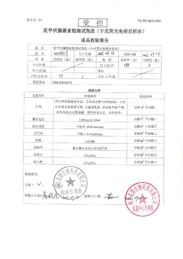 促甲状腺激素检测试剂盒(干式荧光免疫层析法)