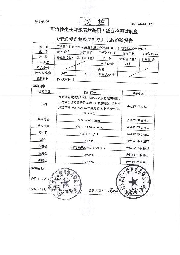 可溶性生长刺激表达基因2蛋白检测试剂盒(干式荧光免疫层析法)