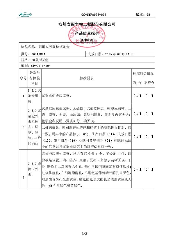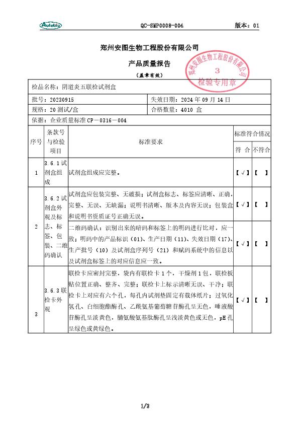 安图 阴道炎五联检