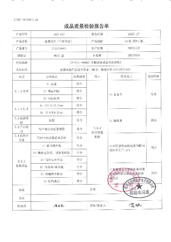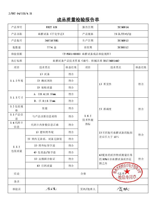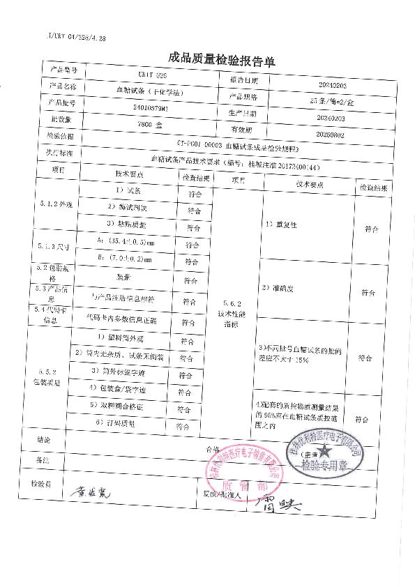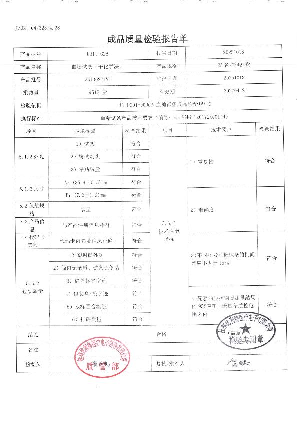 优利特血糖试条(干化学法)