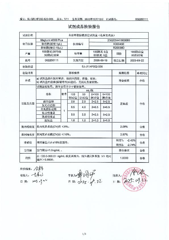 新产业血清甲状腺素(T4)测定试剂盒(化学发光法)