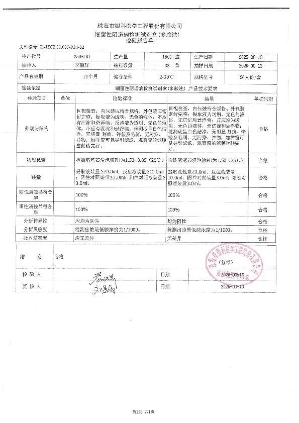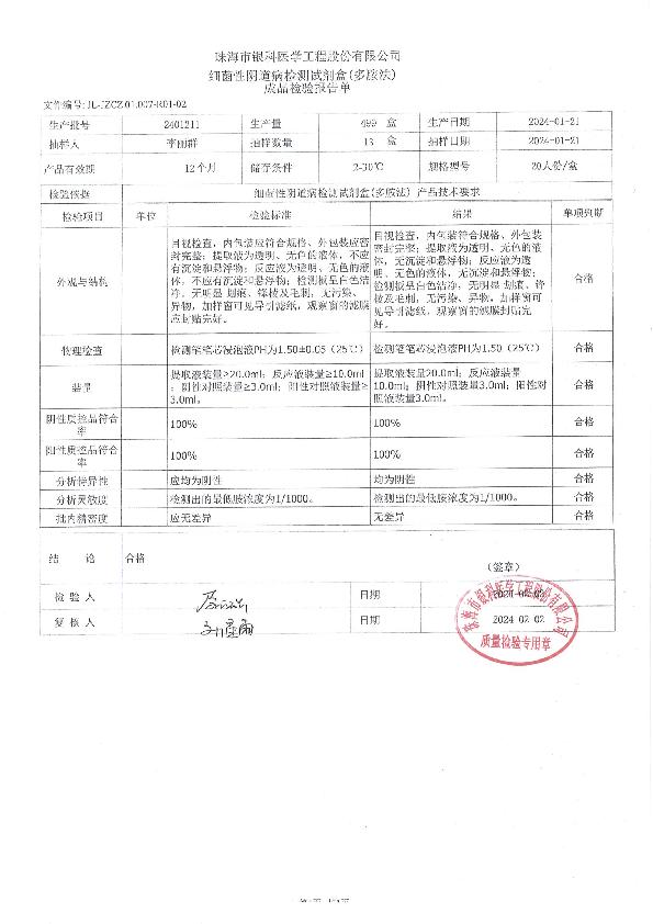 银科 细菌性阴道病检测试剂盒(多胺法)
