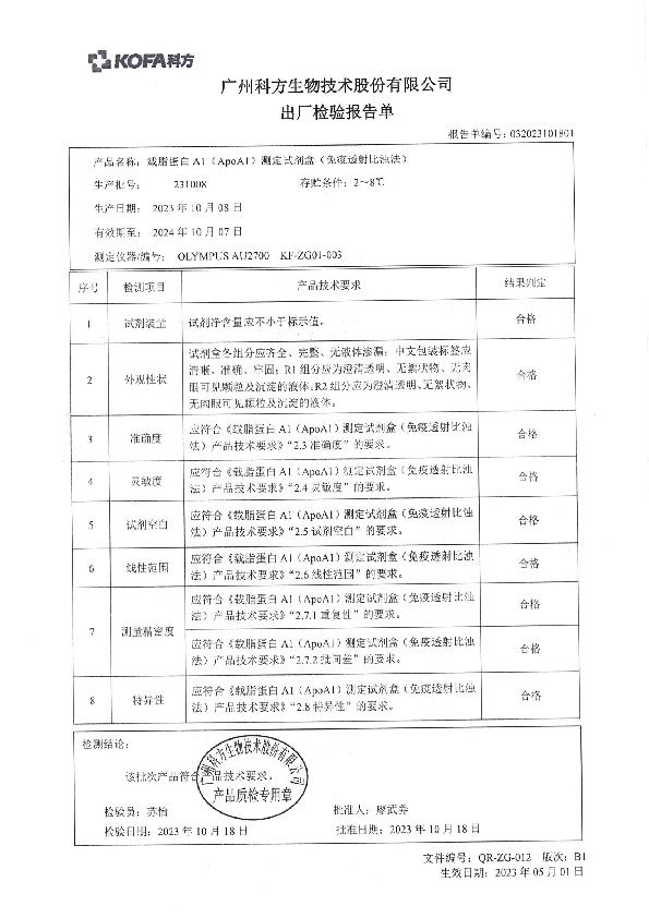 科方 载脂蛋白A1(ApoA1)测定试剂盒(免疫透射比浊法)