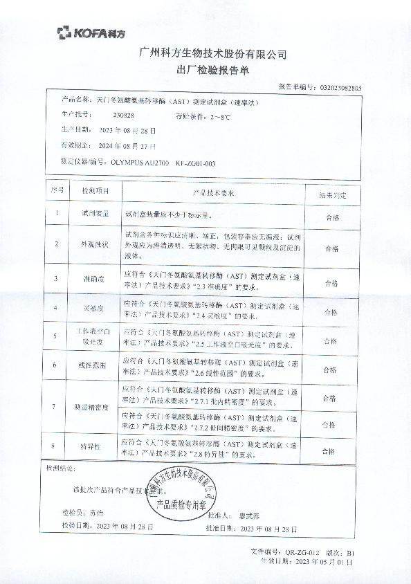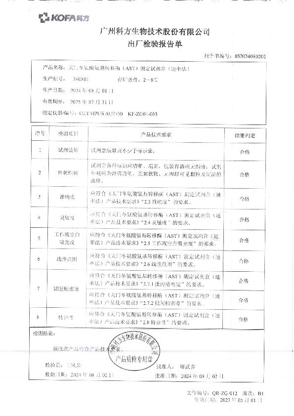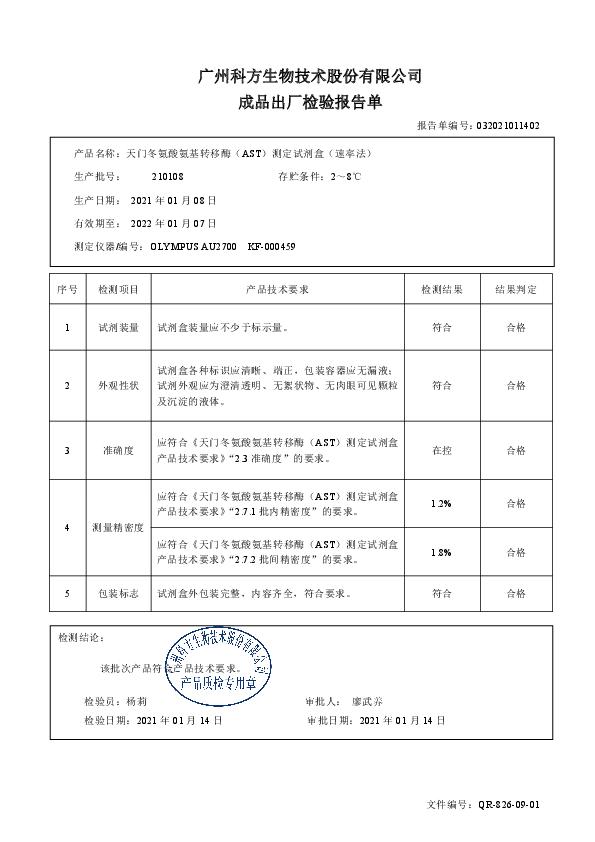 科方天门冬氨酸氨基转移酶(AST)测定试剂盒(速率法)