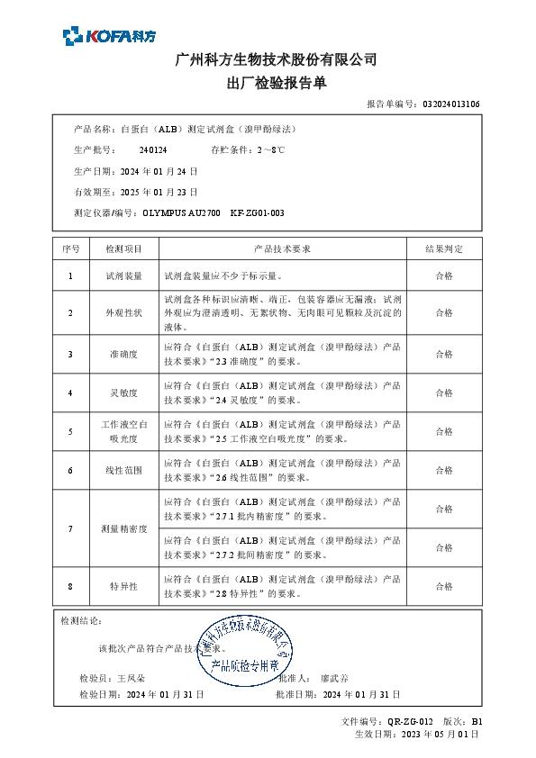科方白蛋白(ALB)测定试剂盒(溴甲酚绿法)