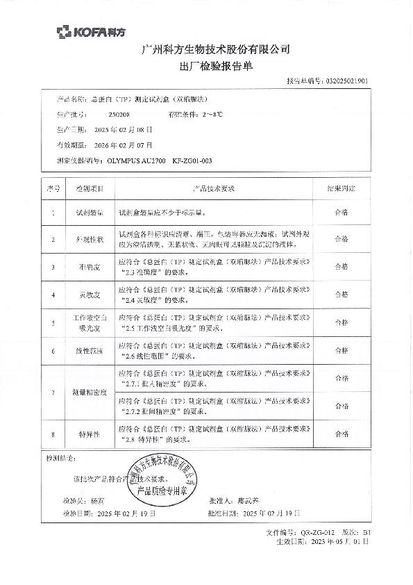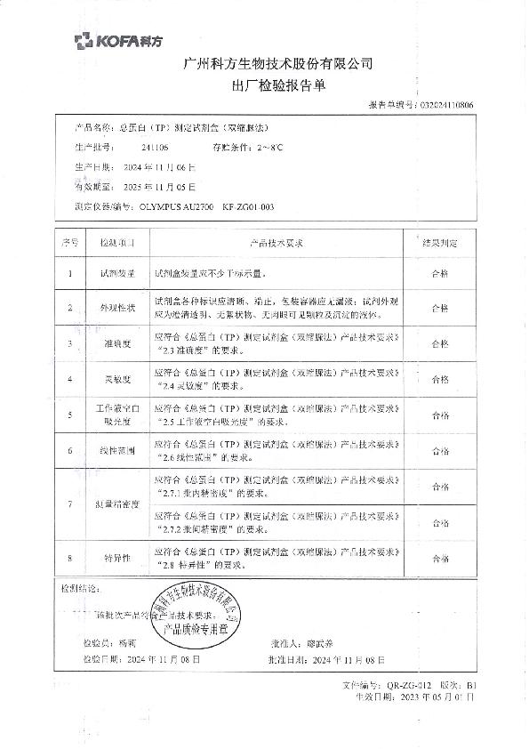 科方总蛋白(TP)测定试剂盒(双缩脲法)