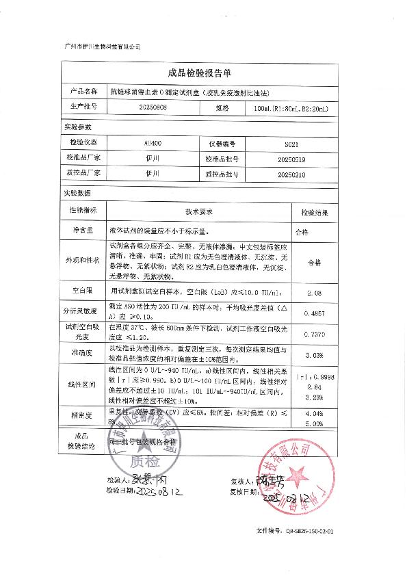 抗链球菌溶血素O测定试剂盒(胶乳免疫透射比浊法)