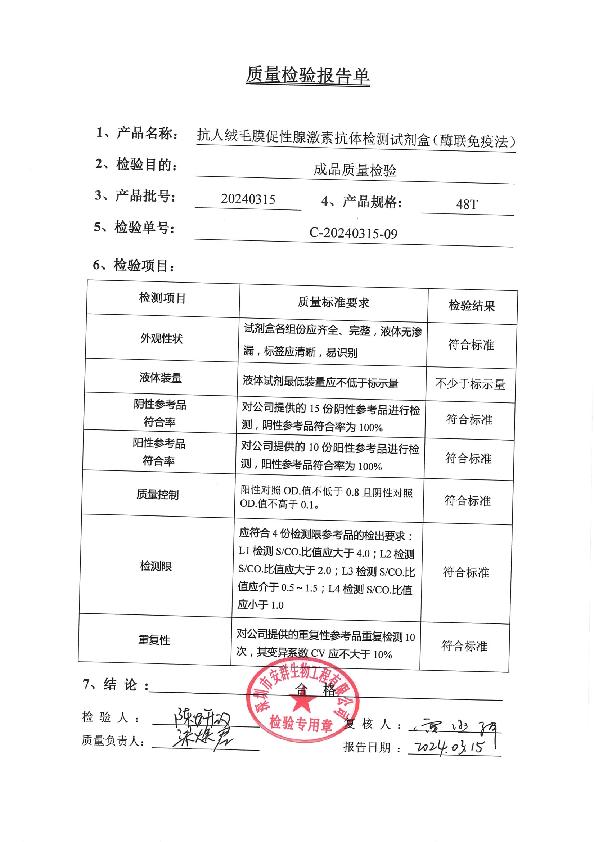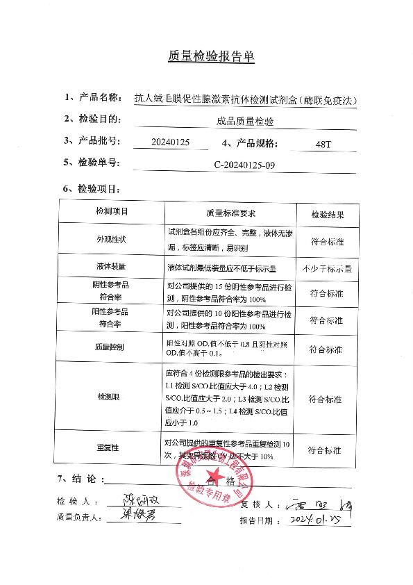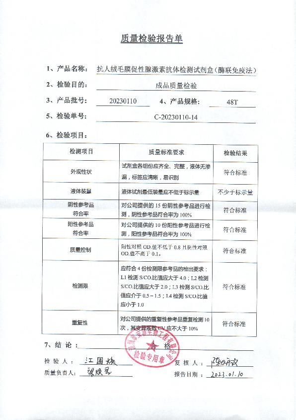 安群 抗人绒毛膜促性腺激素抗体检测试剂盒(酶联免疫法)